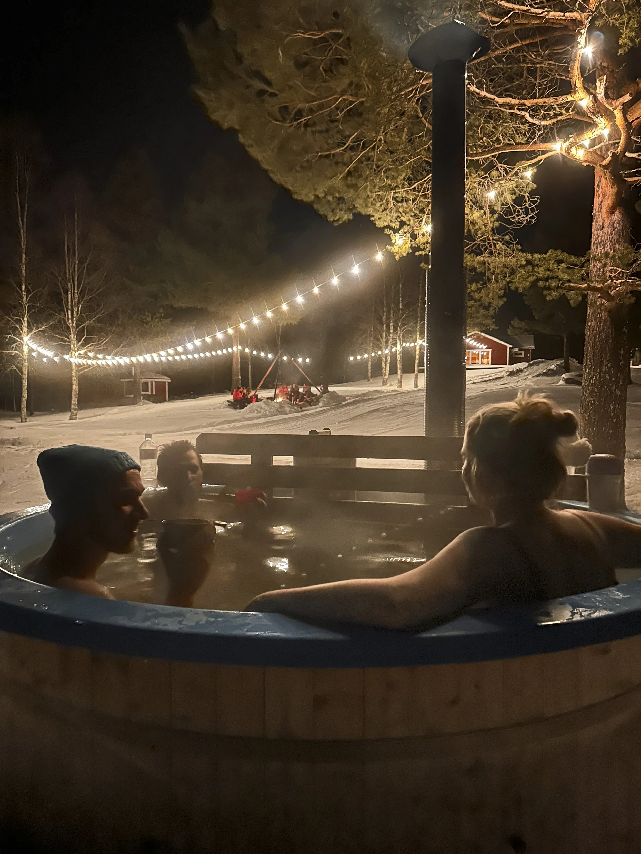 Through snowshoe hikes, winter walks, optional snowmobile rides, natural ice baths and time in the sauna, we immerse ourselves in the raw beauty of the Swedish wilderness.